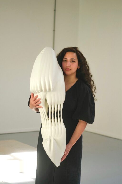 Crystal De La Cruz (1990) received an interest-free loan through CBK Rotterdam x Fonds Kwadraat for her project Efigie and YocahúShe uses the loan for the material costs of two new sculptures. Efigie and Yocahú are part of Cruz's Cemí series. This project is an investigation into the Taíno heritage of Quisqueya (Dominican Republic) and the Nautilus spiral, which symbolizes continuous growth. In the Taíno tradition, cemís are sacred objects connected to the forces of nature. Yocahú is named after Yocahú Bagua Maorocotí, the Taíno deity of fertility, creation, and the sea. Efigie is a portal artifact, a piece intended to connect humans and spirits through ritual.